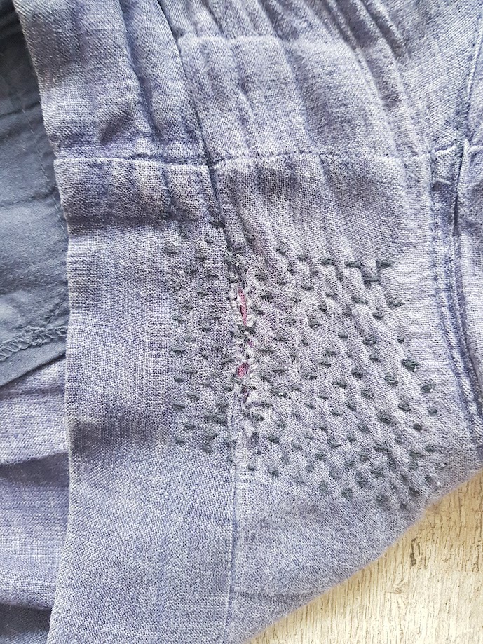 Das Sashiko ist schön passend zum Stoff.